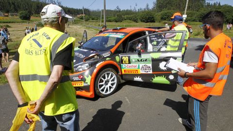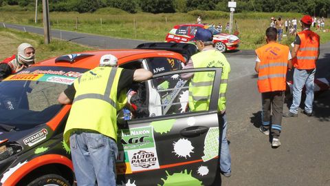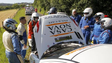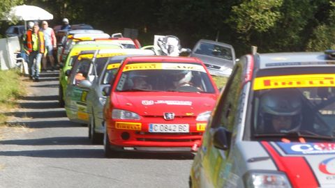 Los favoritos a ganar en Narón hace tiempo que llegaron a la línea de meta pero todavía siguen saliendo coches en el segundo tramo de la mañana. Así es la mecánica de salidas en un rali, apenas hay tiempo para acelerar antes de que el siguiente te pise los talones.