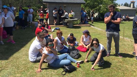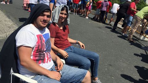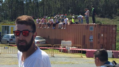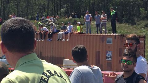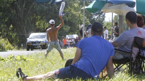 Los espectadores se cobijan del calor como pueden. Eso sí, con alegría, que es día de rali.