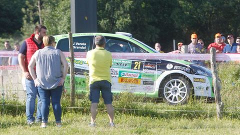 Concretamente es el Mitsubishi Lancer EVO X de Adrián Gil y Uxío Lamas que se ha quedado clavado al poco de salir. El equipo Siroco Narón, los locales, podría quedarse ya sin un representante.