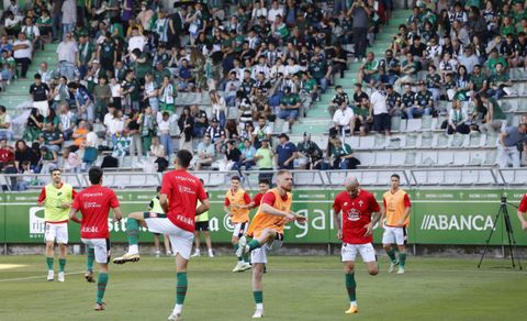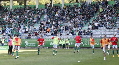 Primera posesión para el Racing. AMBIENTAZO en las gradas de A Malata. Arbitra Gorka Etayo.