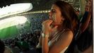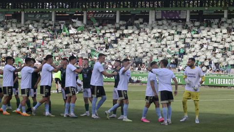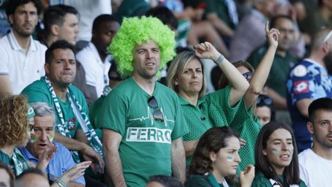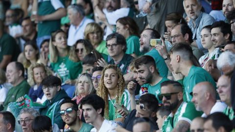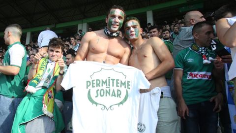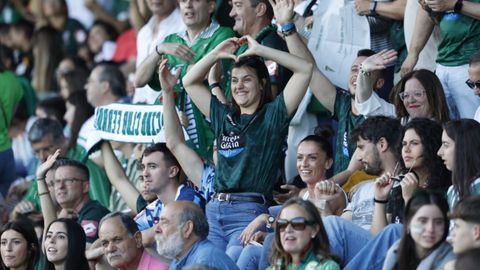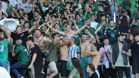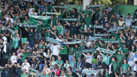 Cánticos festivos en la grada de A Malata. La afición racinguista cree en el ascenso a Segunda División.