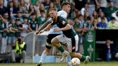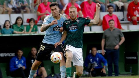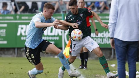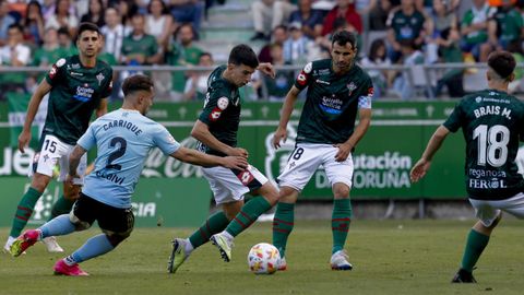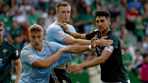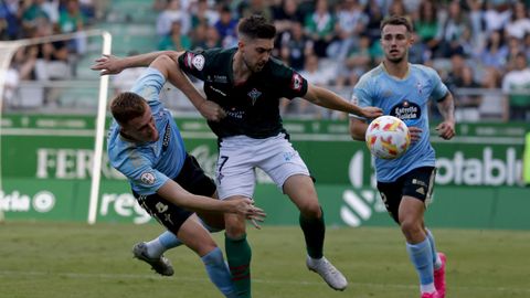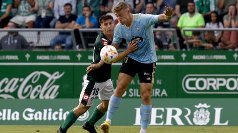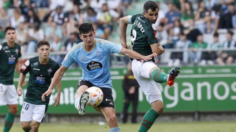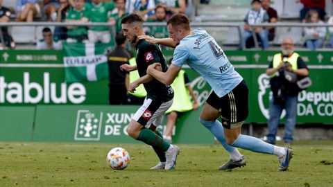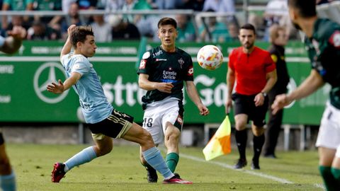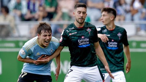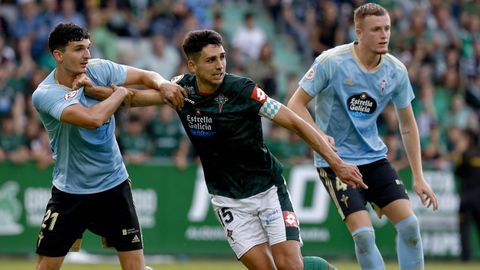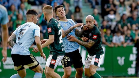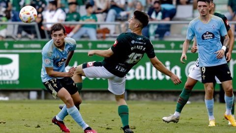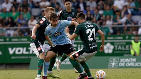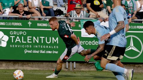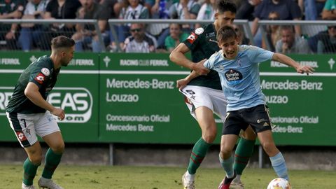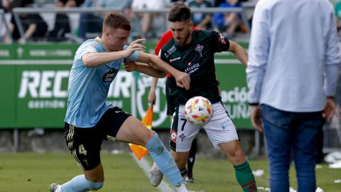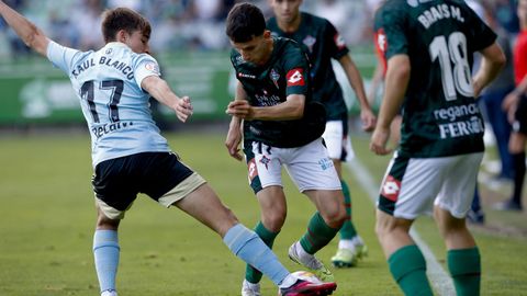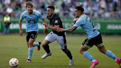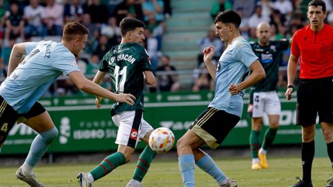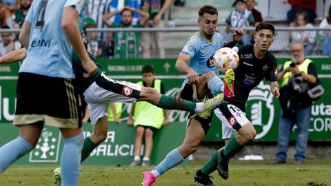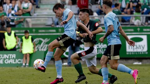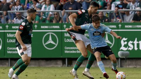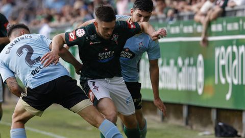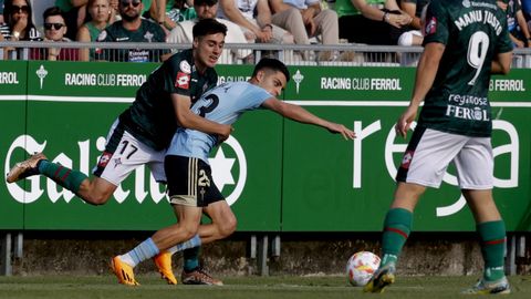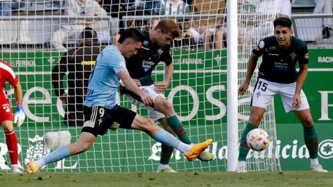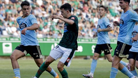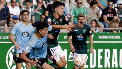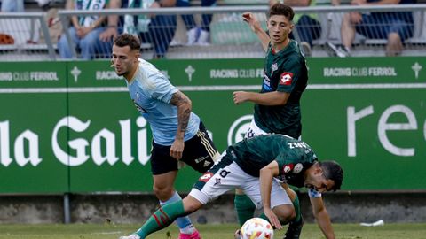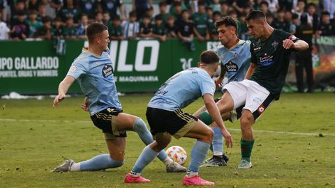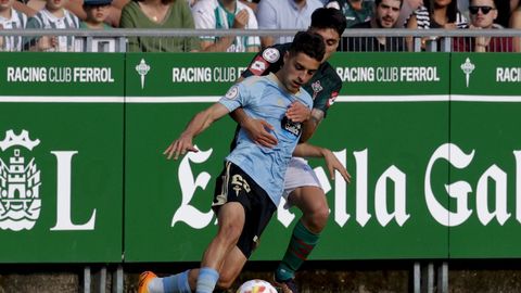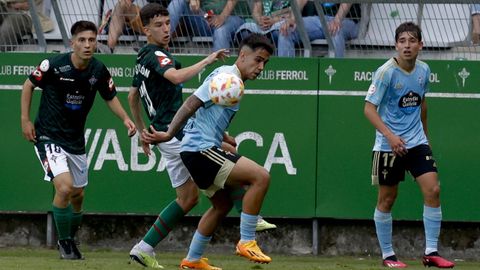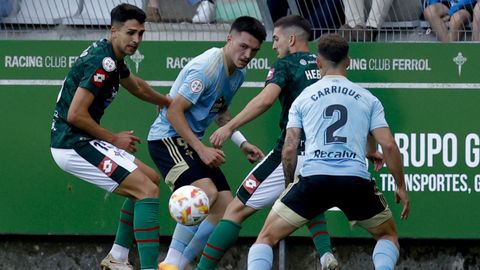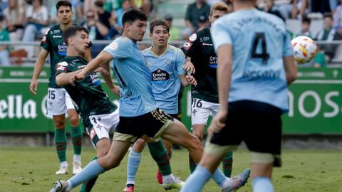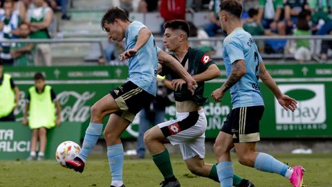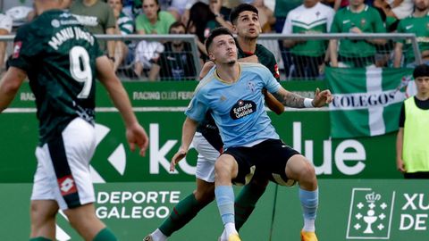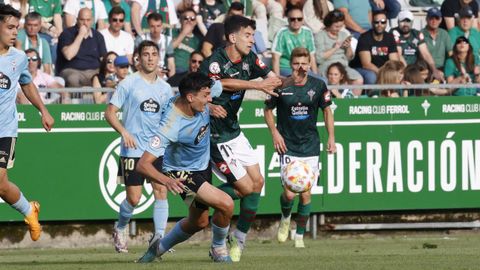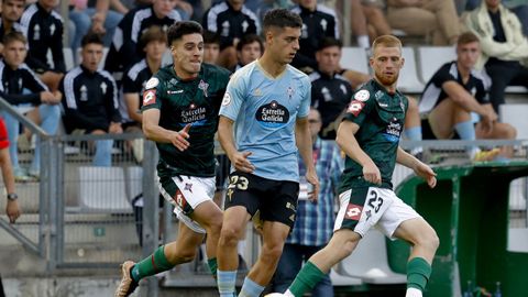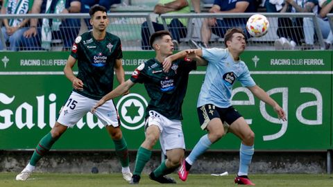 Presión adelantada del filial celeste que está dificultando la salida de balón del Racing. Los vigueses están manejando la pelota a su gusto.