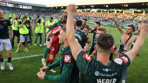 El fútbol te da y el fútbol te quita. Siempre ha sido así. Cuando te quita, duele. Mucho. Pero cuando te ofrece un regalo como el ascenso del Racing... Ferrol, feliz. La ciudad llevaba días, desde el partido de Talavera, aguantando a duras penas para poder soltar su alegría. Y no pudo salir mejor. Ascenso en casa. Al calor de la olla a presión que fue A Malata. Al calor de una ciudad entregada al verde. Con épica. Nadie dijo que iba a ser fácil.
