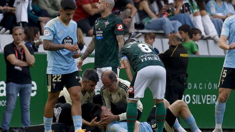 Se duele Álex López tras un choque con Lautaro. Se reincorpora el ferrolano sin problemas.