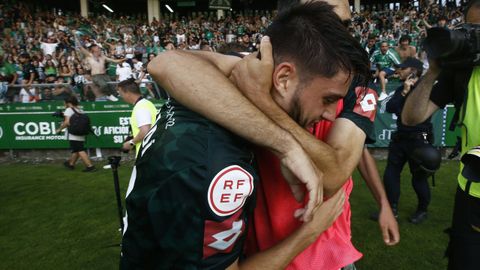 «¡Me caso con Jardí!», pedía Marina desde la grada con una emoción totalmente descontrolada. Se sufrió como nunca, pero así las fiestas merecen mucho más la pena. Y, tal y como empezó el partido, coreando el himno de Los Limones, ese sé que aquí nací, aquí quiero quedarme, aquí está mi hogar, donde se acaba el mar, el árbitro daba el pitido final y estallaba la emoción. «Estoy, que no me lo creo. Aún no creo que se haya conseguido y que el año que viene vayamos a estar en Segunda», decía Jesús emocionado. Arropado por una bandera racinguista y entre ella su hija Elena, es otro de los rostros que no podían aguantar las lágrimas. «De lo que más me alegro es de que lo haya podido vivir mi hija, y que pueda ver al Racing en Segunda», reconocía.