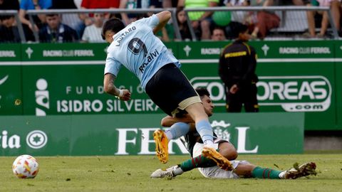 ¡Qué entrada más dura! Llegó muy tarde el jugador del Celta B, que se llevó por delante a Enol Coto.