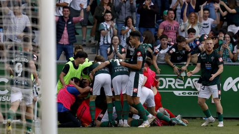 Las lágrimas de emoción de una conmovida Lucía corriendo por sus mejillas decoradas con dos corazones verdes encarnan la locura que vivió A Malata. Hubo tensión, nervios, enfado y mucha, mucha alegría y pasión por ver al Racing lograr la gesta de volver a Segunda. Y, aunque tocó que esperar hasta la recta final para celebrarlo, con el primer gol de la noche el sentimiento racinguista se desbordó.