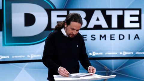 Pablo Iglesias mantiene el perfil que ofreció en el debate de Televisión Española, en un plano más de analista político que de rival hacia la Moncloa.