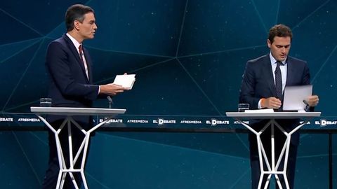 Albert Rivera le llevó a Pedro Sánchez «un libro que no ha leído, su propia tesis». El candidato socialista le respondió regalándole el libro del presidente de Vox, Santiago Abascal, «para que conozca los planteamientos políticos de sus aliados».