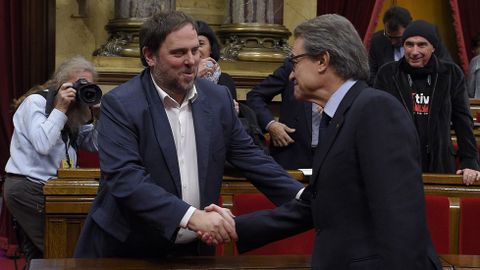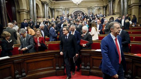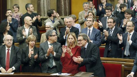 El Parlamento de Cataluña aprueba, con los 72 votos de los diputados de Junts pel Sí (JxS) y la CUP, la «declaración solemne del inicio del proceso de creación del Estado catalán independiente en forma de república», un «proceso de desconexión» que «no se supeditará» al Tribunal Constitucional.