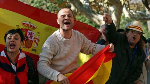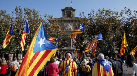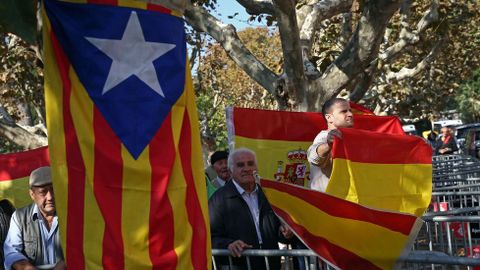 A las puertas del Parlament se han concentrado varios grupos de personas con banderas españolas y catalanas.