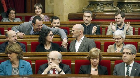 Concluye su intervención Romeva diciendo que «ha llegado la hora de ir a por todas» entre aplausos de sus compañeros de grupo parlamentario