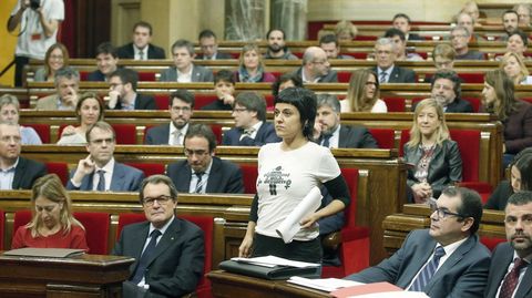 La diputada de la CUP Anna Gabriel defiende que la cámara está legitimada tras los resultados del 27 de septiembre, y lamenta los años en los que el Gobierno español «ha inculcado un miedo muy grande».