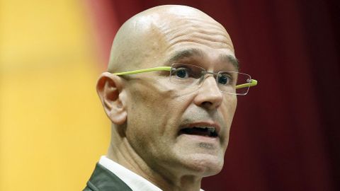 El número uno en las listas de Junts pel Sí, Raül Romeva, toma la palabra. Romeva defiende en su dirscuro el proyecto de independencia planteado su plataforma, en la que ERC y CDC son las principales formaciones políticas, y la CUP.