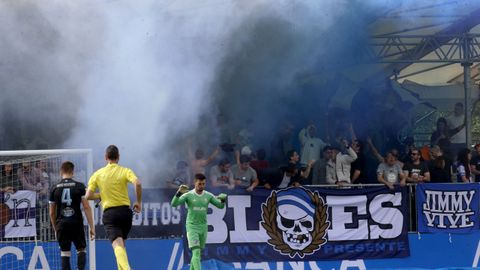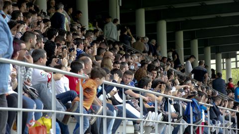 En breves minutos conoceremos las alineaciones de los dos equipos, la gente sigue ocupando la grada principal del campo en Abegondo.