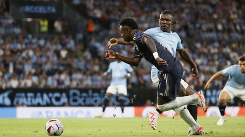 Buena jugada de combinación del Celta, que no consiguió culminar. El Real Madrid contestó con una contra de Vinicius, que combinó con la Rodrygo, pero el futbolista cayó en el área. El colegiado le ordenó levantarse.