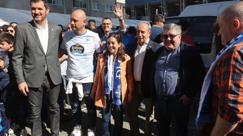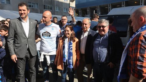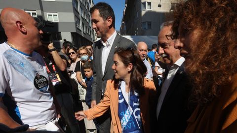 En el sorteo de campos junto al colegiado del partido manchego. Saque de honor como homenaje a los 50 años del Hospital público de A Coruña (CHUAC)