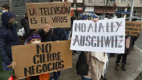 Decenas de manifestantes profirieron consignas a ambos lados de la calle contra la ley de salud y nuevo el plan forestal de Galicia