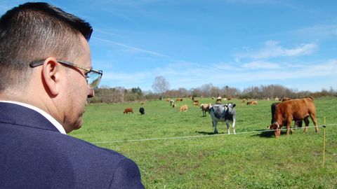 Una explotación de vacas en extensivo de A Peroxa ha servido al conselleiro de Medio Rural para mostrar el potencial de las razas autóctonas como fórmula para revalorizar la producción ganadera y recuperar tierras