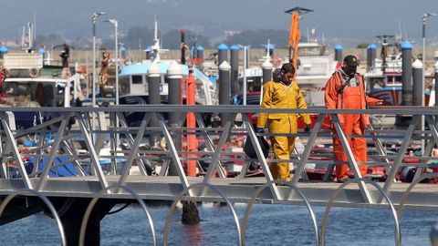 La OPP-20 reparte entre el sector del mar de A Illa unas bolsas en las que guardar su tarjeta de trabajo y en las que, en un bolsillo supletorio, podrán depositar los restos de los cigarrillos que puedan consumir durante la jornada