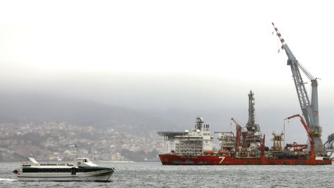 El Seven Borealis, que tiene 180 metros de eslora y se dedica a la instalación de tubos submarinos, se refugia del mal tiempo