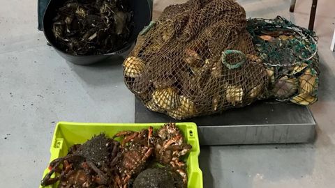 Se les requisaron 25 kilos de nécoras, 78 de vieira, ocho de centolla, nueve de choco, un lubrigante y un pulpo de más de cinco cinco kilos