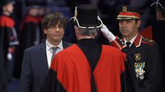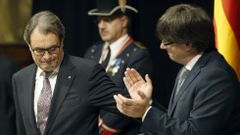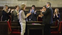 En el Parlamento catalán, una abarrotada tribuna de invitados, entre ellos, la familia de Mas y su esposa, Helena Rakosnik, además de miembros del que ha sido su gabinete como presidente. A pocos metros, Marcela Topor, mujer del hasta ahora alcalde de Gerona