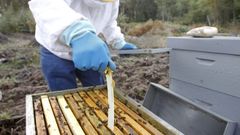 La miel de Eva Seijo ha conseguido el premio platino en Londres. Además de cuidar las colmenas, alimenta a estos insectos cuando aumenta la presión de las velutinas