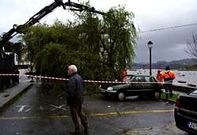 Rachas de viento de hasta cien kilómetros por hora derribaron un eucalipto en el Reina Sofía En Ares, un rayo entró en una vivienda habitada