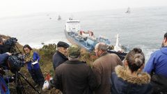 01 dic 2019 Cientos de turistas en busca de una foto del Blue Star Los curiosos se acercaron a la costa de Ares para seguir las tareas de extracción del combustibe en el barco César Toimil