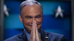 Subió al escenario, primero para aceptar «humildemente» ser el aspirante a la vicepresidencia con Hillary Clinton y después, para atacar al multimillonario despreciando sus promesas vacías y su egoísmo