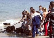 Escolares de Marín aprenden a conservar el ecosistema costero Un equipo de buzos en colaboración con el Concello retira basura del lecho marino de la playa
