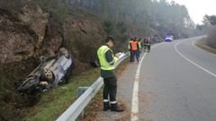 Una primera fase está preparando el terreno, con un pase de agua subterráneo, para suprimir una acentuada curva en la carretera Toén-Arnoia, en el municipio de Cartelle