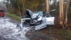 01 ene 2019 Un joven rianxeiro resultó herido en un aparatoso accidente en Catoira El vehículo que conducía quedó destrozado tras colisionar contra un eucalipto Bea Costa
