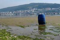 Reportaje | El fuel de Corcubión Las mariscadoras que trabajaron en la regeneración de los arenales hace un año recogieron posibles restos de hidrocarburos en un recipiente que sigue en medio de la playa