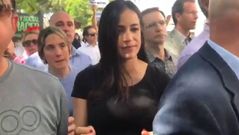 La candidata de Ciudadanos a la alcaldía de Madrid, embarazada de nueve meses y que dará a luz mañana, fue increpada por activistas de la Plataforma de Afectados por la Hipoteca