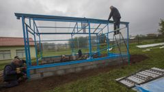 Aplican asfalto tras la instalación de los servicios en la futura senda de Carballo a Coristanco