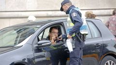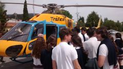 El helicóptero de Tráfico participa en una iniciativa de seguridad vial que contó con la asistencia de alumnos del colegio SEK-Atlántico y del instituto Fontenla de Poio. La campaña también está siendo impulsada por la Policía Local y la DGT.