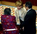 La candidata fue apoyada por los 57 diputados del PP, mientras que los del PSOE e IU votaron en contra Los tres portavoces polemizaron sobre quién es más conservador