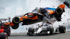 26 ago 2018 Fernando Alonso, fuera del GP de Bélgica tras un espectacular accidente El alemán Hülkenberg embistió en el arranque de la carrera al piloto español y lo lanzó por los aires. El asturiano no resultó herido EFE