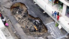 21 sep 2014 El socavón que provocó la lluvia en Boiro dejó en el aire parte de la calle Los operarios comprobaron que el agujero era mucho mayor bajo el asfalto maría hermida