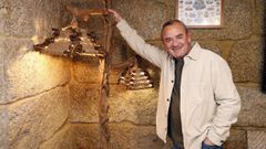 El popular payaso Popín, que vive en la zona de Coruxo cercada por el fuego en el 2017, dedica el parón profesional a diseñar lámparas que fabrica con troncos y ramas que encuentra