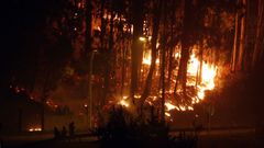 Los bomberos han explicado que el fuego, con una fuerte carga térmica, se ha producido en una zona de vaguada, «lo que contribuye a que se concentre el calor y el fuego se propague con mayor rapidez»