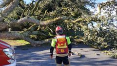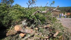 06 sep 2020 El viento tira un alcornoque centenario en Lousame El árbol cayó sobre el cierre de una vivienda y se llevó por delante parte del tendido eléctrico A. L.