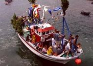 Crónica | Polémica procesión marítima en Camelle El capitán del buque «Abrente», que fue capturado con 4.500 kilos de cocaína, llevó ayer en su nuevo pesquero la imagen de la Virgen del Carmen