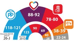 Los de Iglesias superan de largo al PSOE; los populares suben en votos, pero se dejan dos escaños; Ciudadanos se estanca, y la izquierda podría quedarse a cuatro diputados de la mayoría absoluta
