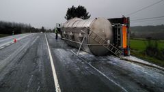 03 mar 2018 Corte en la N-640 en Goiás por el vuelco de un remolque de leche El reventón de una rueda provocó un aparatoso accidente en el que no hubo que lamentar heridos R. Ramos