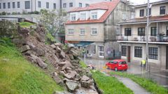 21 may 2020 El temporal hace caer los restos de la torre de los Montenegro en Santa María En un día de lluvia y viento ininterrumpido, hubo accidentes en Pontevedra y Cuntis maría hermida / Nieves D. Amil