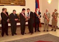 Los alcalde de Lalín y Rodeiro recibieron la distinción en el Palacio de la Gobernación Los alcaldes de Lalín, Xosé Crespo, y de Rodeiro, Eliseo Diéguez, fueron nombrados ayer visitantes ilustres por la ciudad venezolana de Valencia. El gobernador del Estado de Carabobo, Enrique Salas Feo, fue el encargado de imponer la distinción a los dos regidores, así como al director de la Banda de Música de Lalín, Marcel Van Bree, cuyo grupo ofreció un pequeño concierto muy aplaudido en el Palacio de la Gobernación valenciano. La delegació dezana pasó el resto de la jornada en la Hermandad de Valencia.