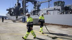 04 sep 2020 Comienzan las obras de mantenimiento en la fragata Almirante Juan de Borbón Permanecerá en el dique un mes y medio M. Arroyo